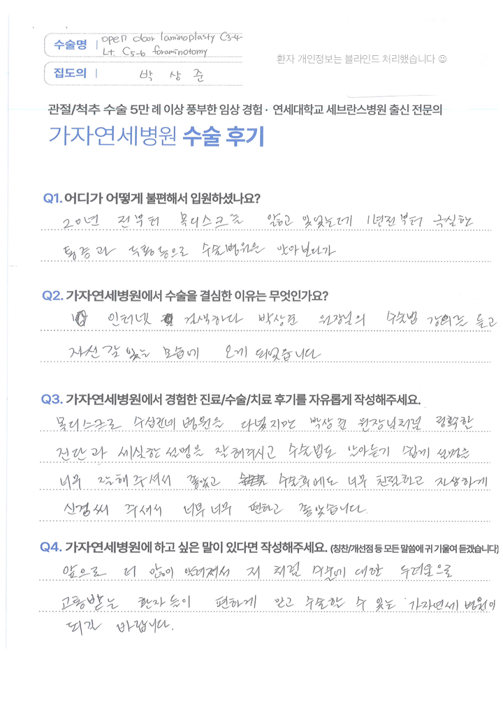 [목·허리클리닉] 척추정형외과 전문의 박상준 ㅣ 경추 3-4-5-6번 후궁성형술 및 경추 5-6번 추간공 확장술