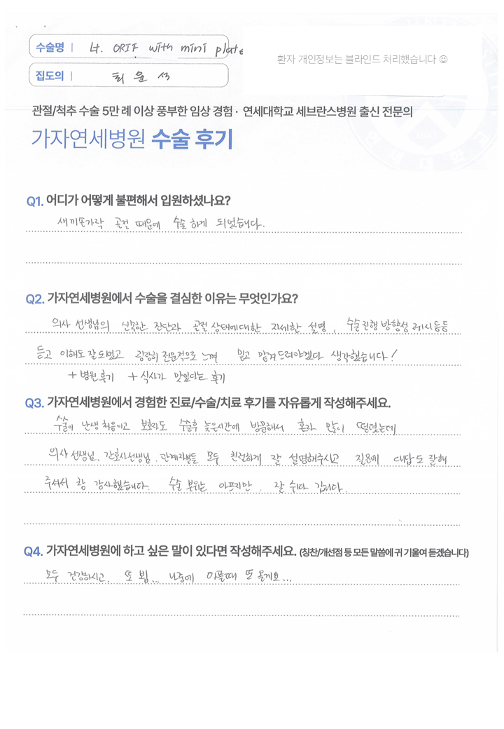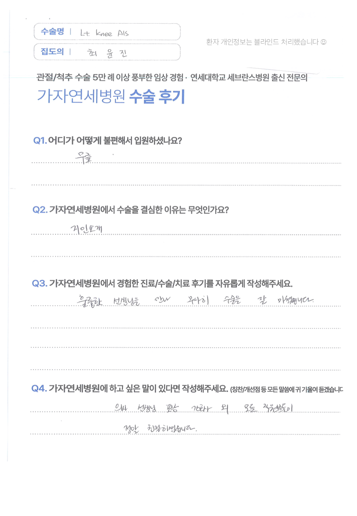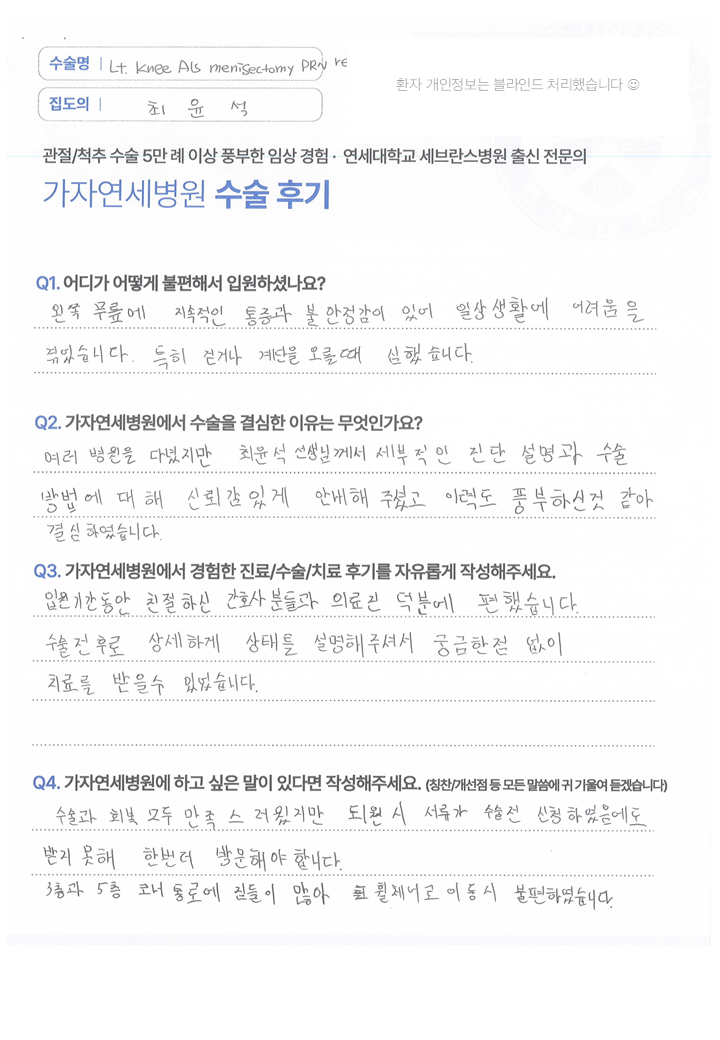 [무릎클리닉] 정형외과 전문의 최윤진 ㅣ 좌측 무릎 관절경 반월상 연골판 부분 절제술