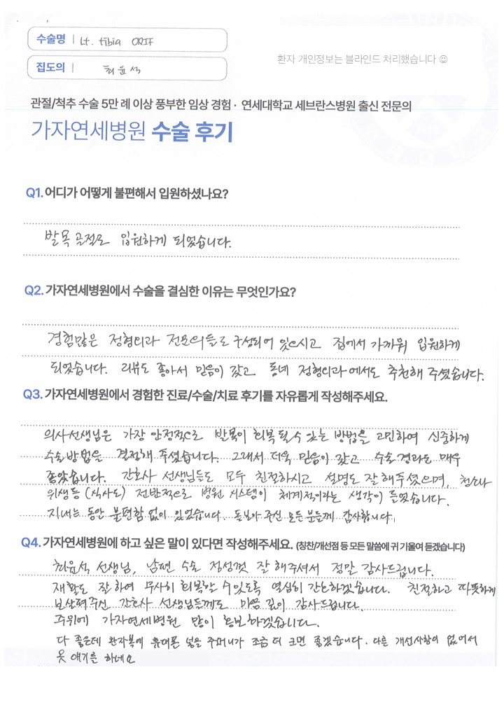 [발·발목·발바닥] 정형외과 전문의 최윤석 ㅣ 좌측 경골 골절 정복술 및 내고정술