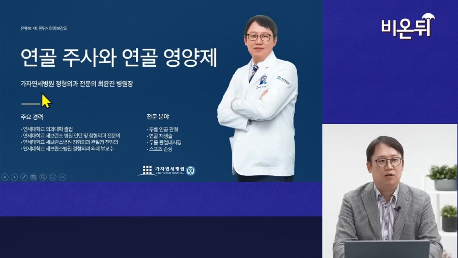 최윤진 병원장 출연! 의학채널 <비온뒤> 라이브강의 : 연골주사의 효과와 관절영양제의 실제 성분