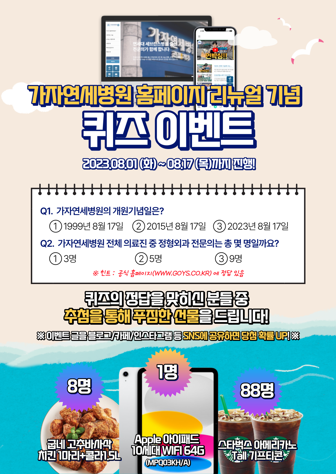 홈페이지 리뉴얼 기념 온라인 퀴즈 이벤트 (8/17까지)