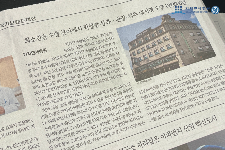 [서울점] 가자연세병원 관절·척추내시경 부문 <조선일보 주관 2023 국가브랜드대상> 수상