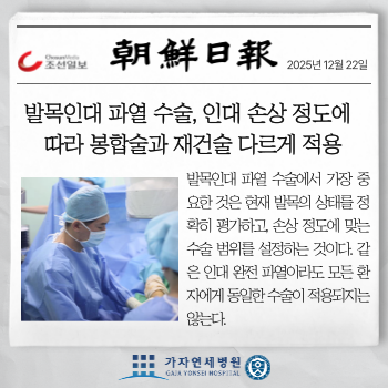[헬스조선/임경한 병원장 건강칼럼] 발목인대 파열 수술, 인대 손상 정도에 따라 봉합술과 재건술 다르게 적용