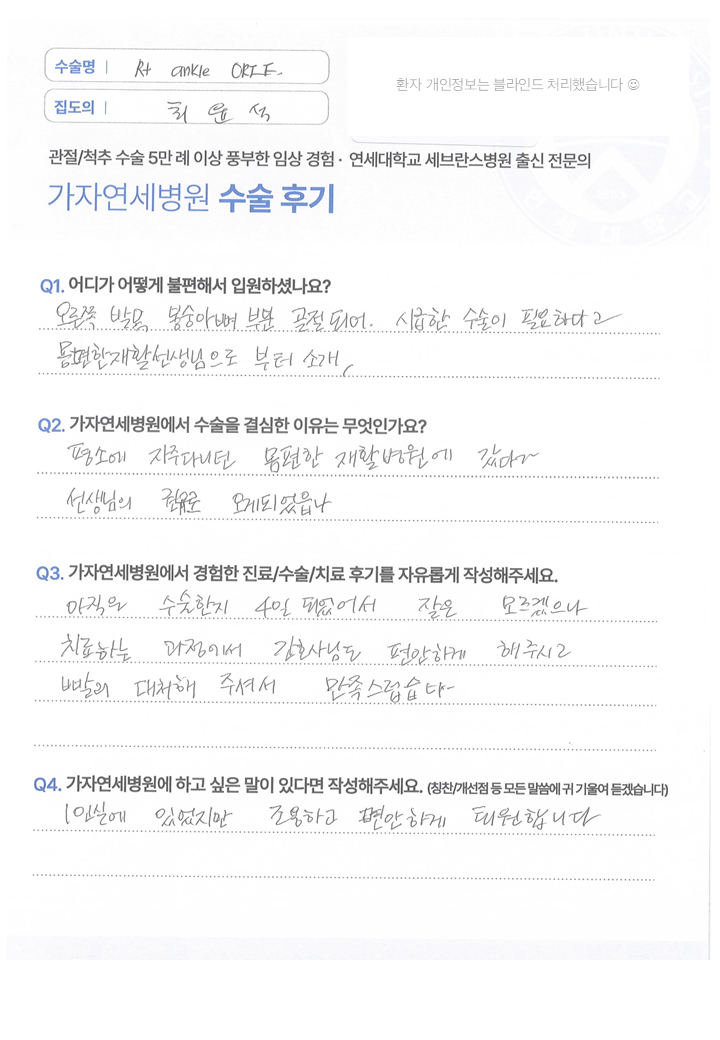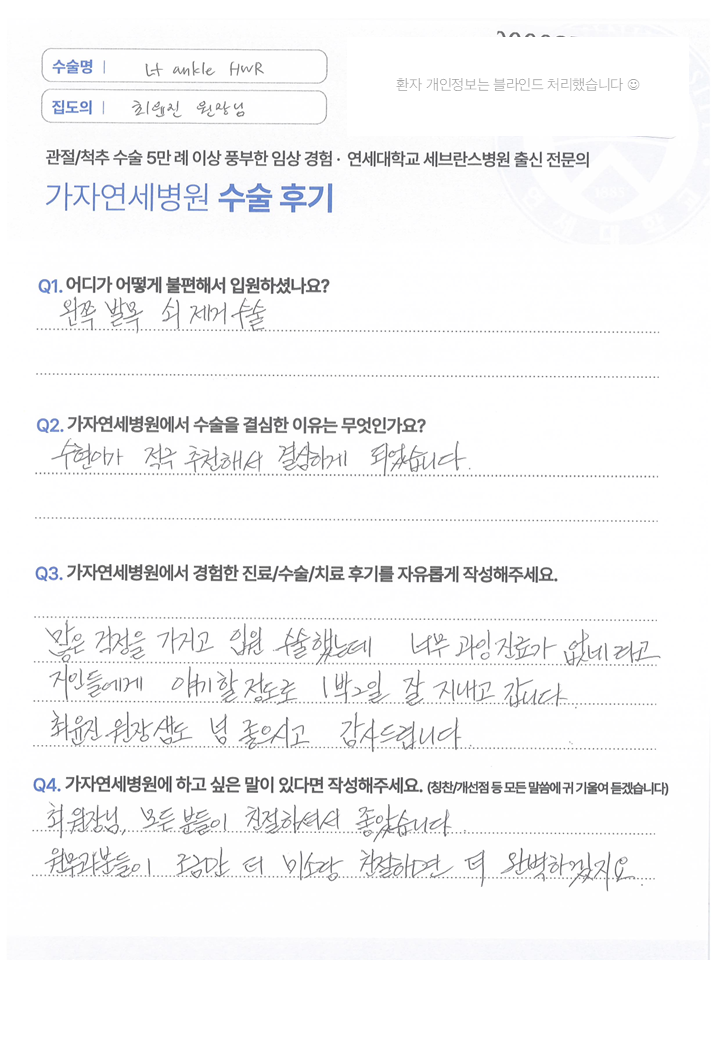 [발·발목·발바닥] 정형외과 전문의 최윤진 ㅣ 좌측 발목 골절 수술 후 핀 제거 수술