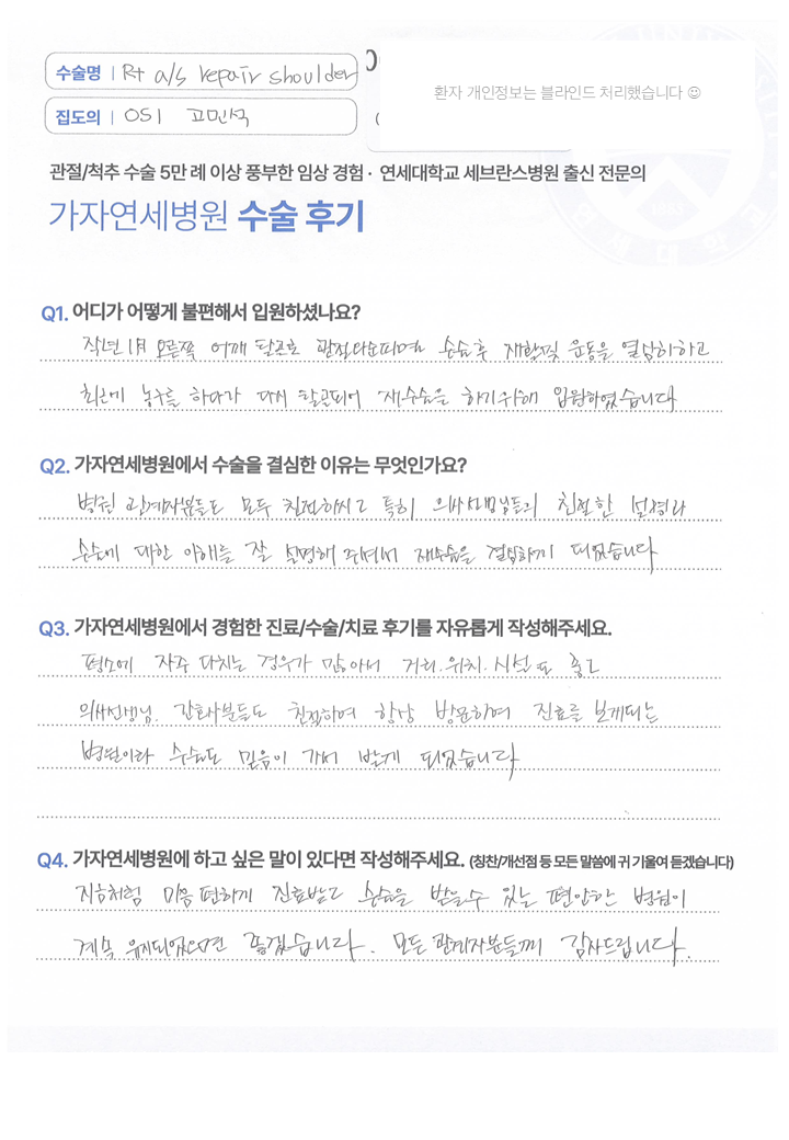 [어깨클리닉] 정형외과 전문의 고민석 ㅣ 우측 어깨 관절와순 파열 봉합술