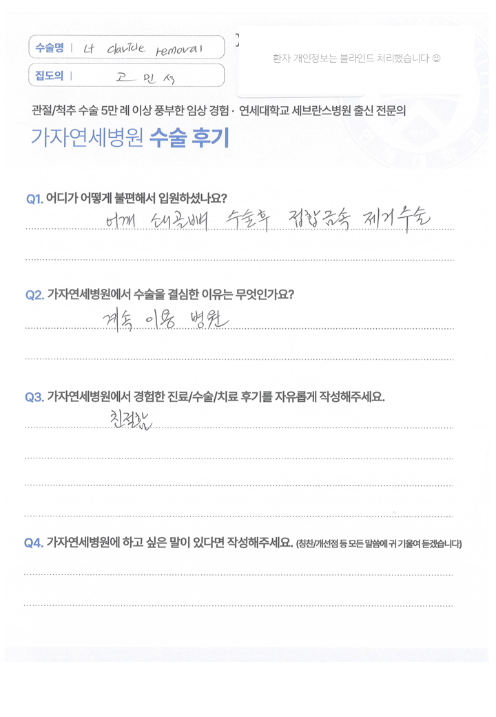[어깨클리닉] 정형외과 전문의 고민석 ㅣ 좌측 어깨 쇄골뼈 골절 수술 후 핀 제거 수술