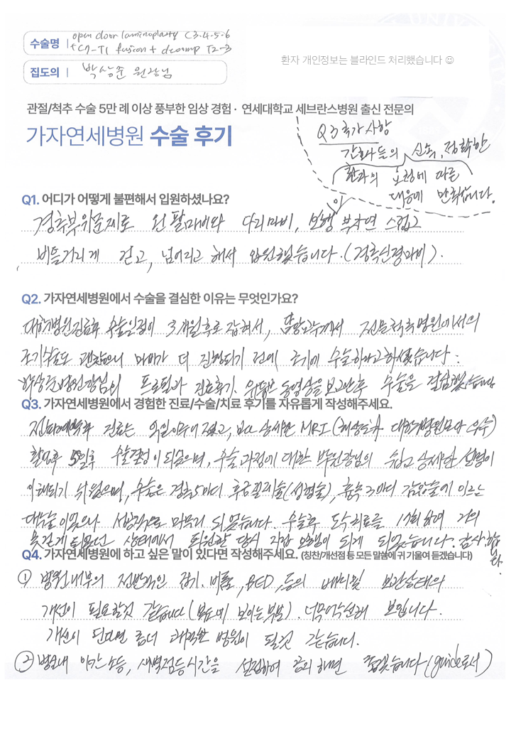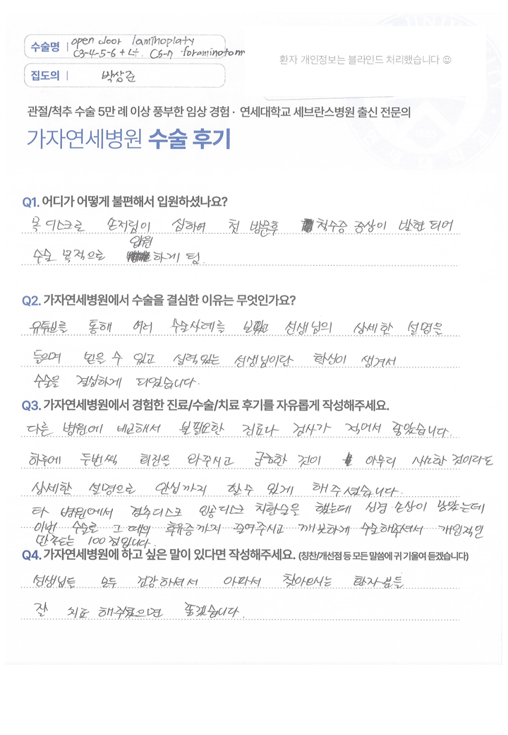 [목·허리클리닉] 척추정형외과 전문의 박상준 ㅣ 요추 3,4,5번 미세현미경하 후방 신경감압수술