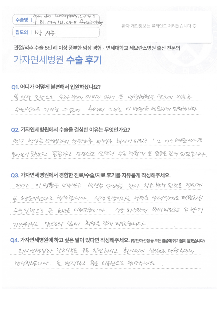[목·허리클리닉] 척추정형외과 전문의 박상준 ㅣ 경추 3-4-5번 후궁성형술 및 추간공확장술