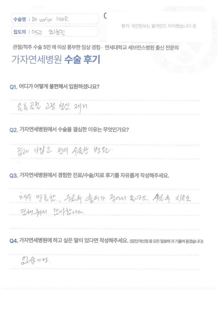 [손·손목·팔꿈치] 정형외과 전문의 최윤진 ㅣ 우측 손목 골절 수술 후 핀 제거수술