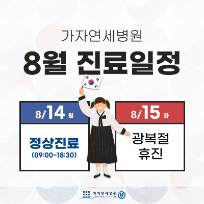 8월 광복절을 맞아 미리 진료 일정을 알려드립니다.