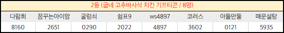 굽네치킨 및 스타벅스 아메리카노 기프티콘은 8/25 (금) 이내에 발송 예정입니다.