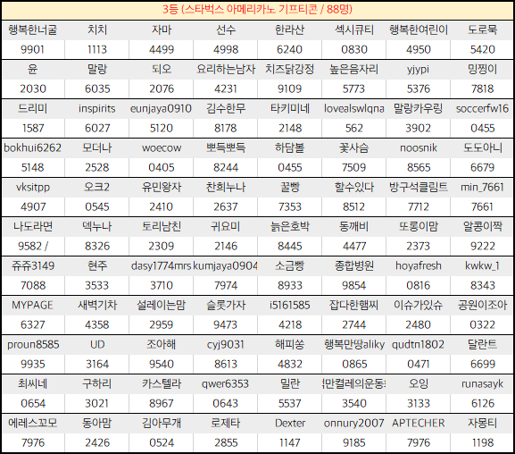 총 1,056명의 참여자 중 정답을 맞혀주신 874명에서 추첨을 진행해 결정된 당첨자 리스트를 발표합니다.