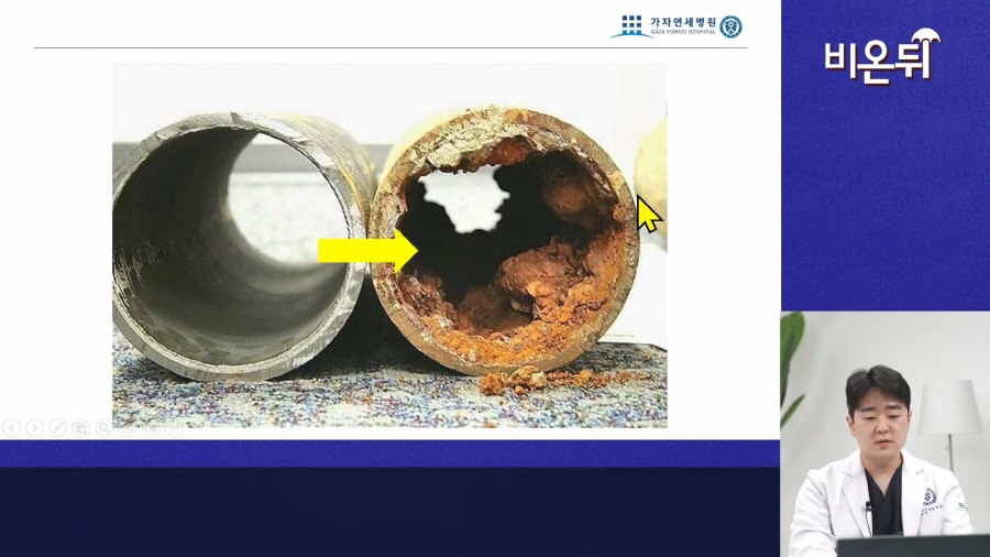 오래 사용하면 수도관도 낡고 이물질이 붙어 좁아지듯이 우리 경추관도 좁아지게 되는데요.