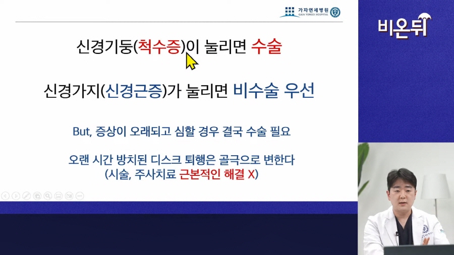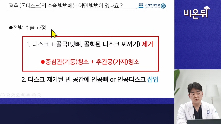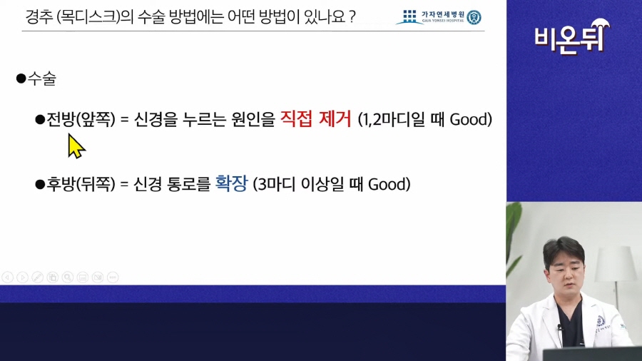 박상준 병원장 출연! 의학채널 <비온뒤> 라이브강의 : 목디스크 수술, 최선의 방법은?