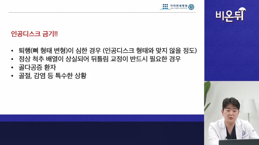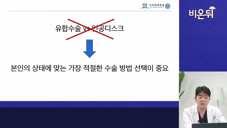 새로운 뼈를 넣을지 인공디스크를 넣을지 결정하는 과정으로 진행된다고 보면 됩니다.