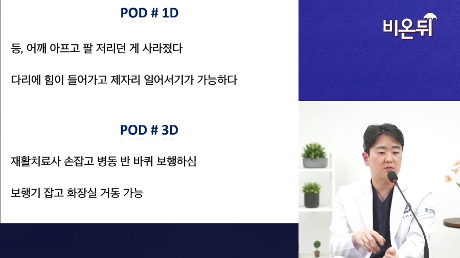 다행히 예상대로 수술 후 1일차부터 바로 등/어깨 통증과 팔 저림 증상은 해결되었고,