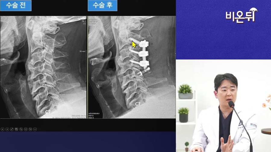 이번 강의 주제는 갑자기 팔, 다리에 힘이 빠지고 걷기가 힘들 때 의심할 수 있는 질환 <경추 척수증, 후종인대골화증> 입니다.