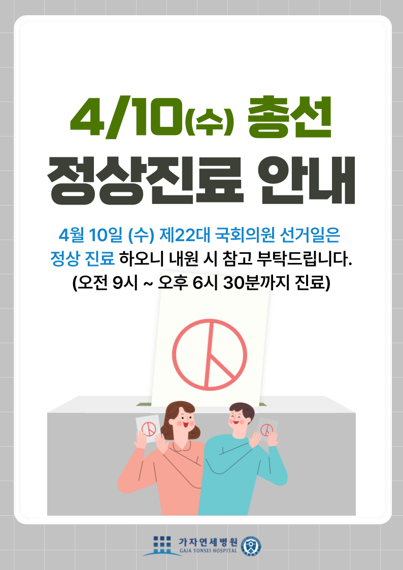 [공지] 가자연세병원 4.10 총선 정상진료 안내