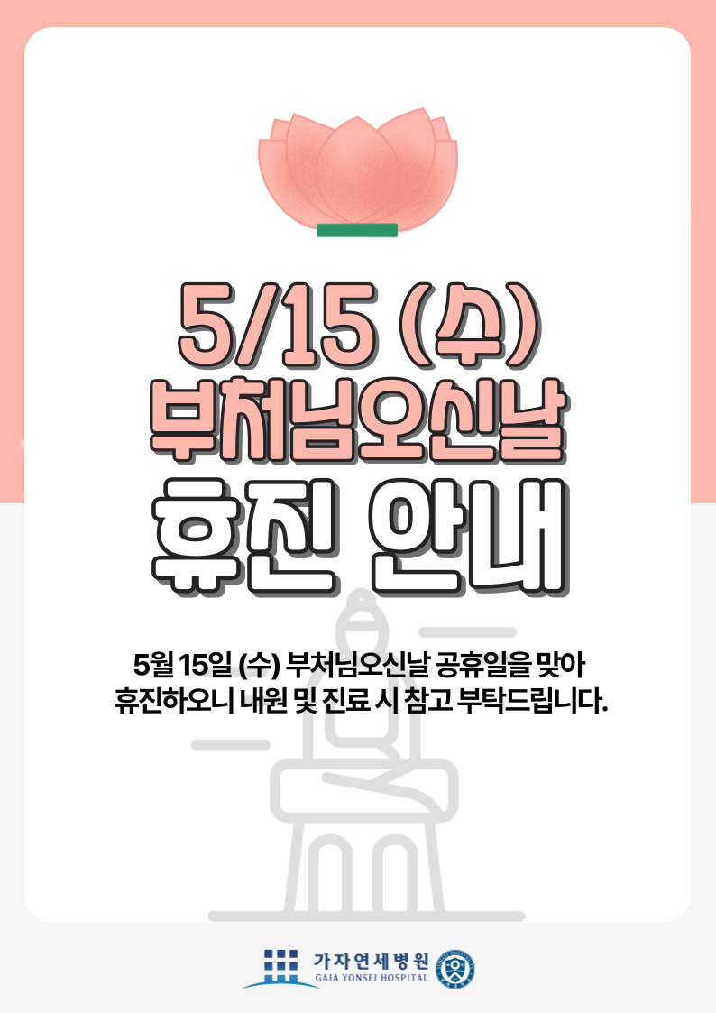 [공지] 가자연세병원 5월 15일 (수) 부처님오신날 휴진 안내
