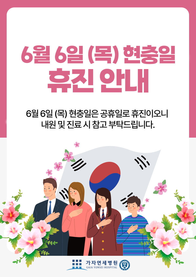 가자연세병원 6월 6일 (목) 현충일 휴진 안내