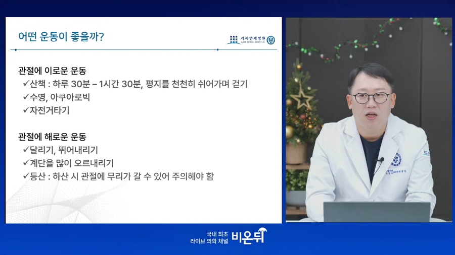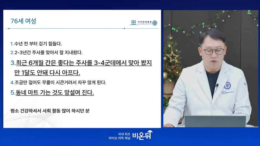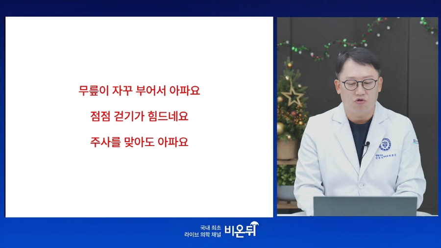 [방송출연] 최윤진 병원장 출연! 의학채널 <비온뒤> 라이브강의 : 무릎 인공관절 수술해야 하는 신호 3가지
