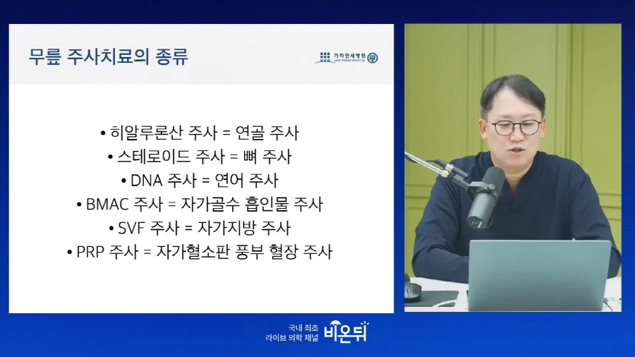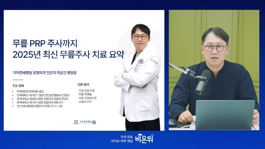 최윤진 병원장 출연! 의학채널 <비온뒤> 라이브강의 : 2025년 최신 무릎주사 치료 요약