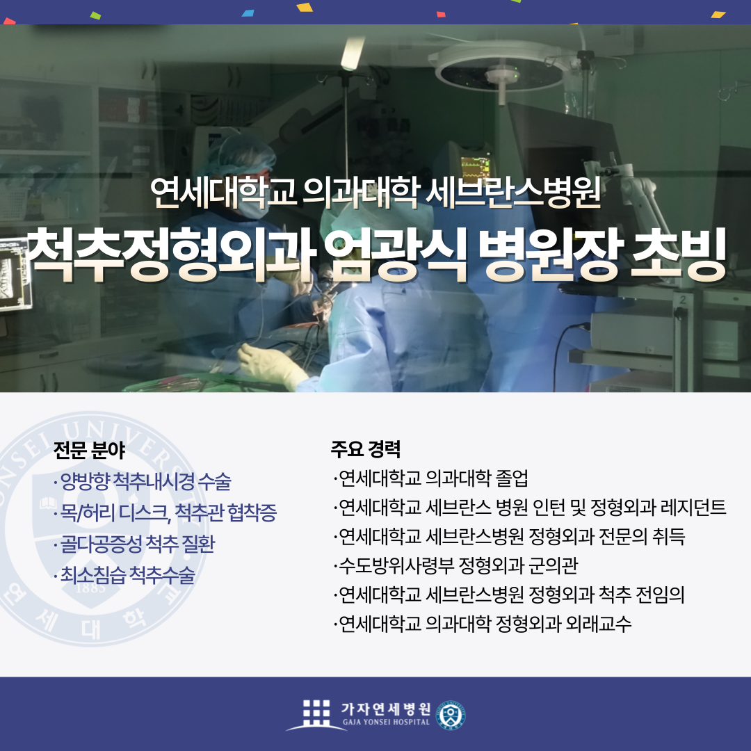 가자연세병원은 연세대학교 세브란스병원에서 척추 전임의를 수료하신