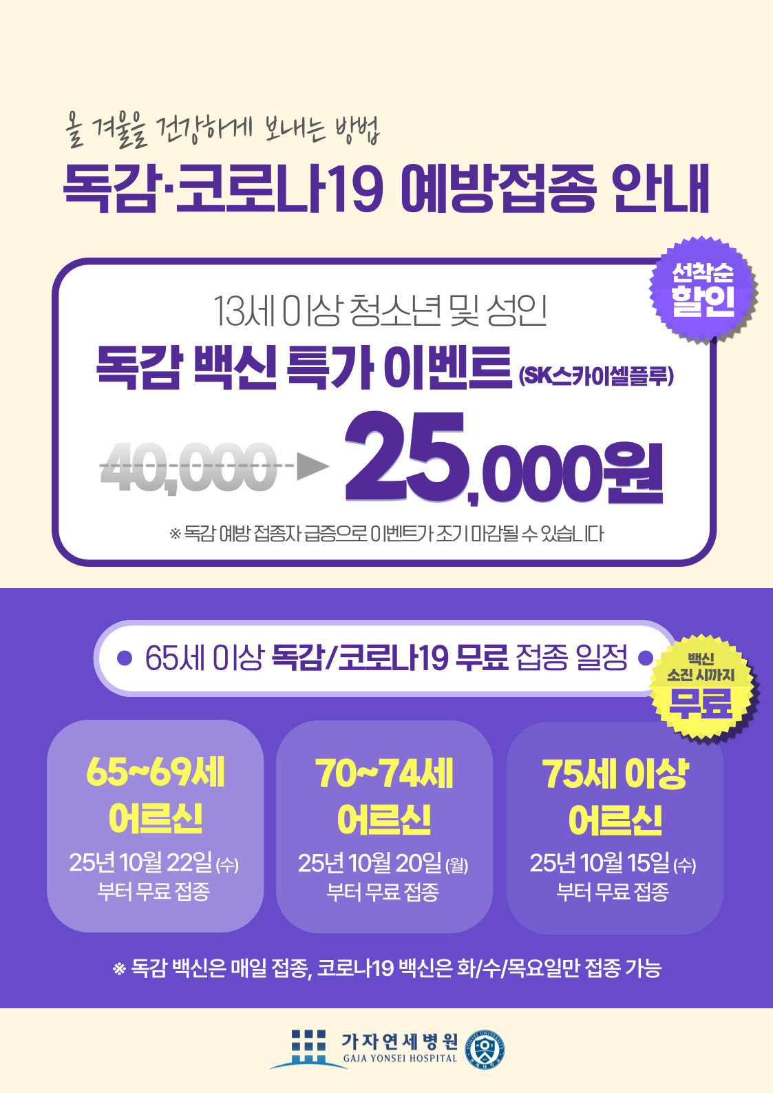 [공지] 2025년 독감 인플루엔자 예방접종 이벤트 및 65세 이상 무료접종 기간 안내
