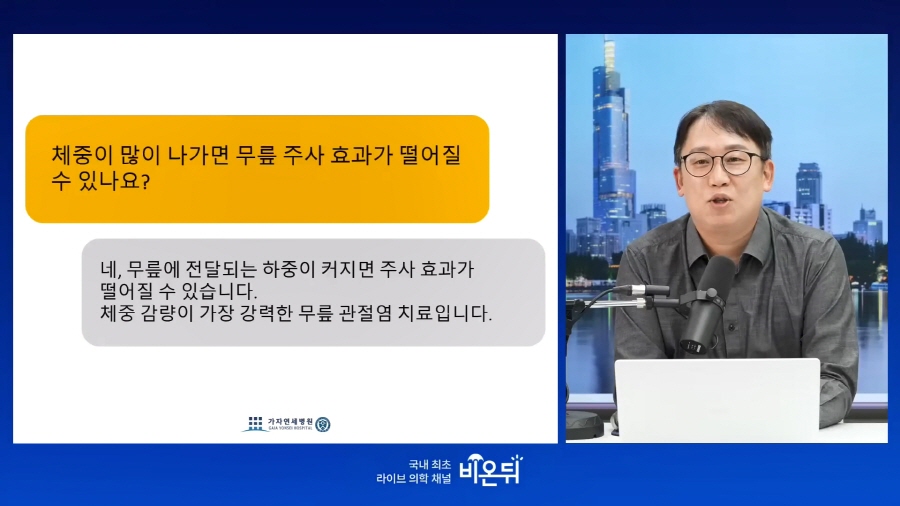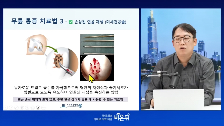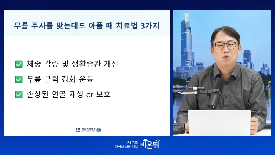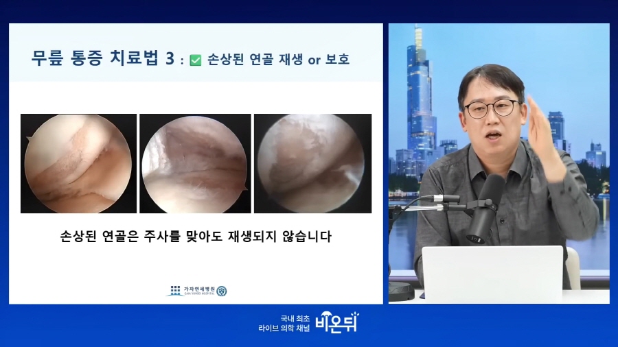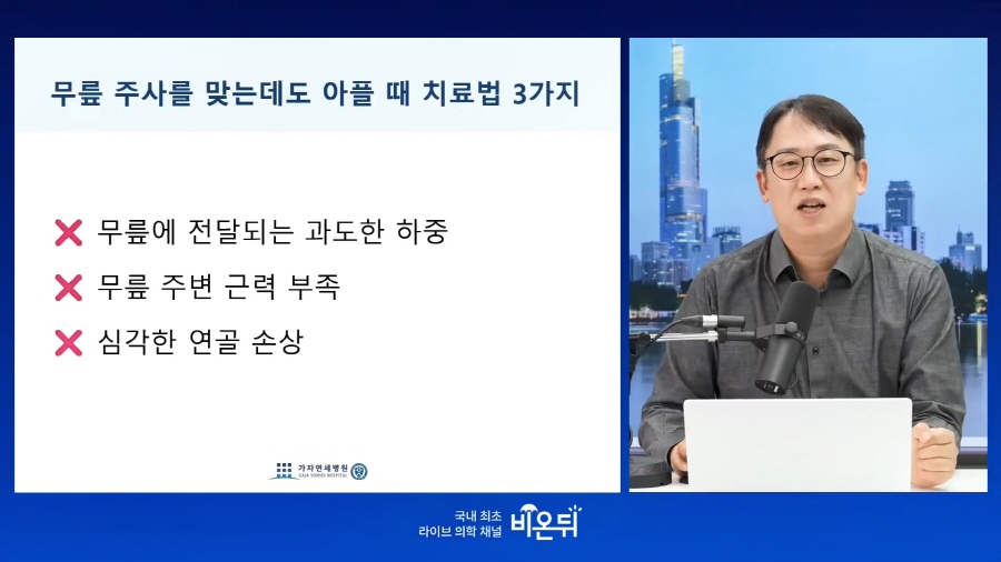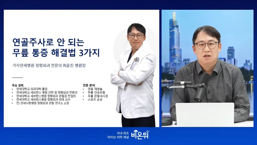 [방송출연] 최윤진 병원장 출연! 의학채널 <비온뒤> 라이브강의 : 연골주사로 안되는 무릎 통증 해결법 3가지