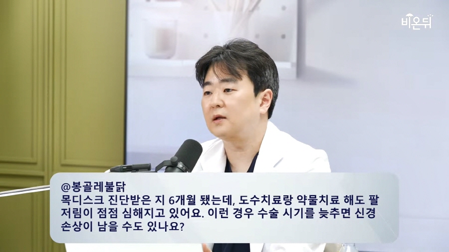 "보존적 치료로 수술 시기를 놓치면 신경 손상이 남나요?" 등